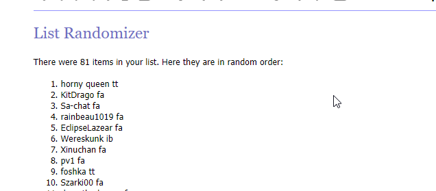 Raffle result!