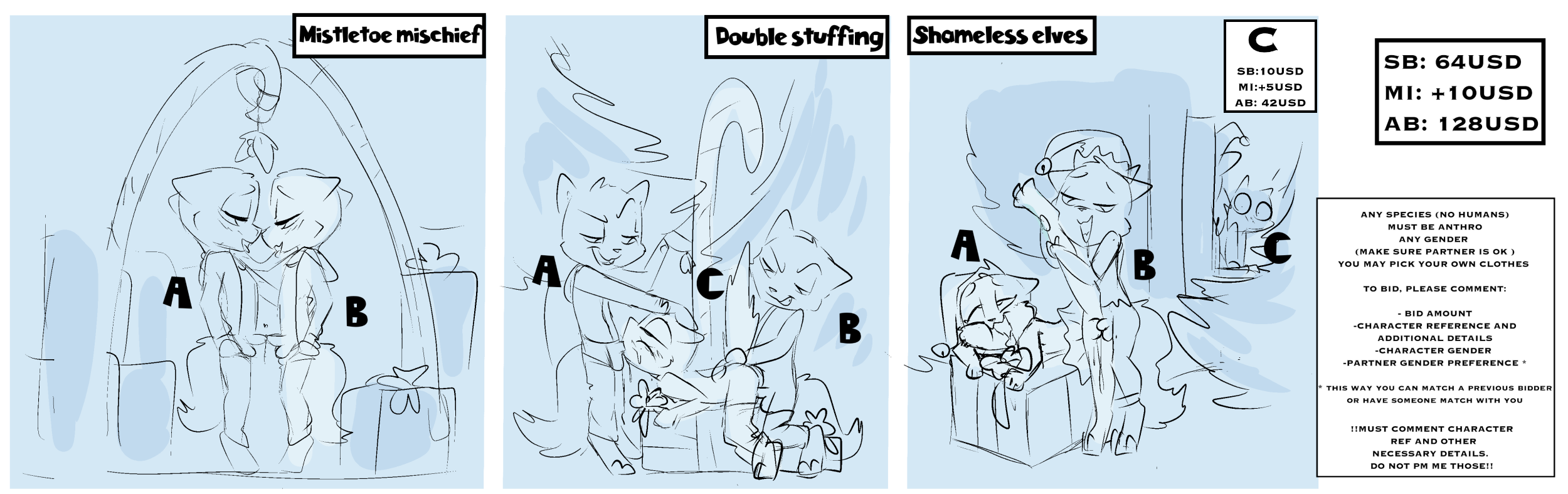 *XXXMAS YCHS*_Mistletoe mischief / Double stuffing / Shameless elves
