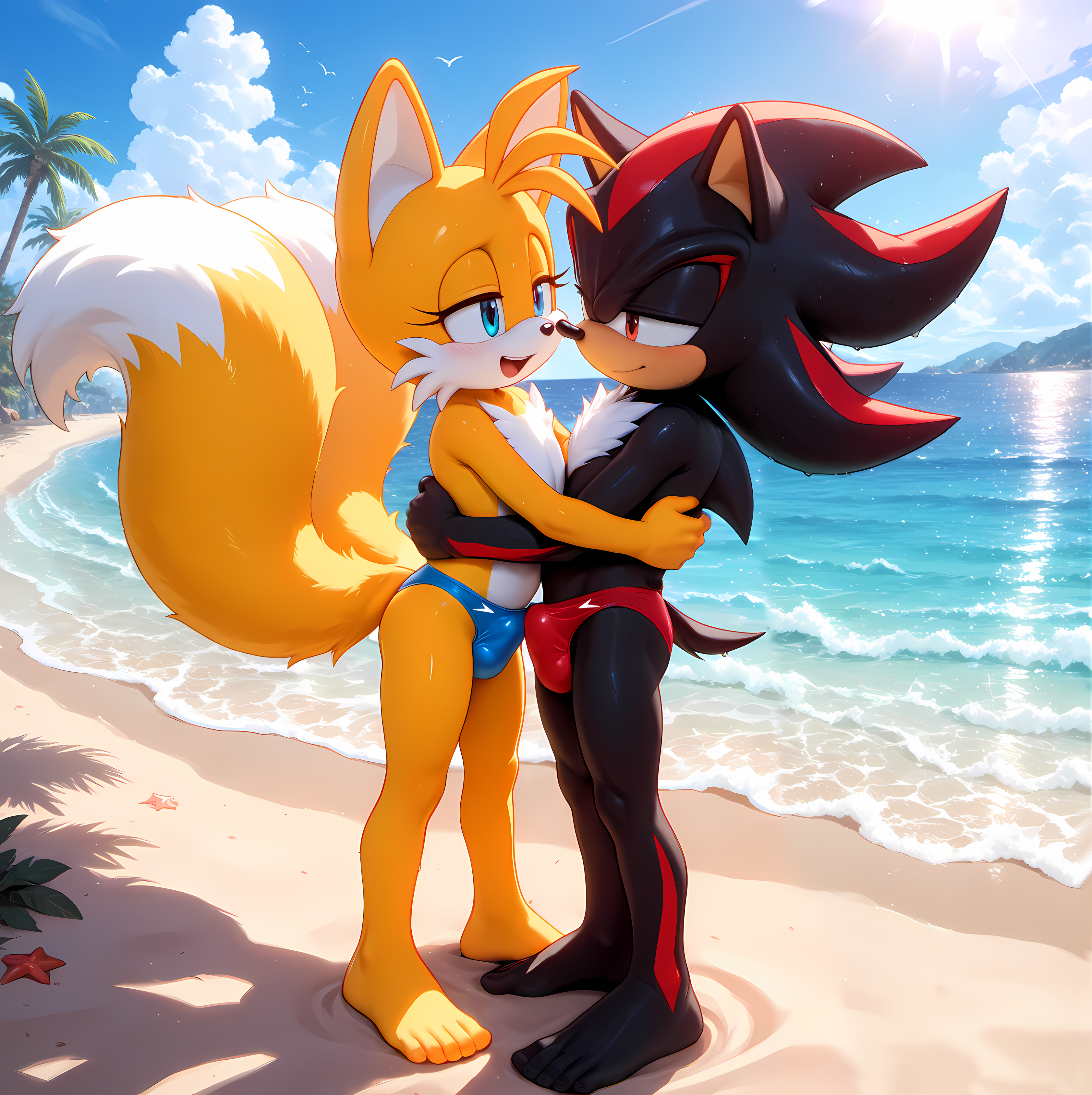 Tails and Shadow Cumming in speedos