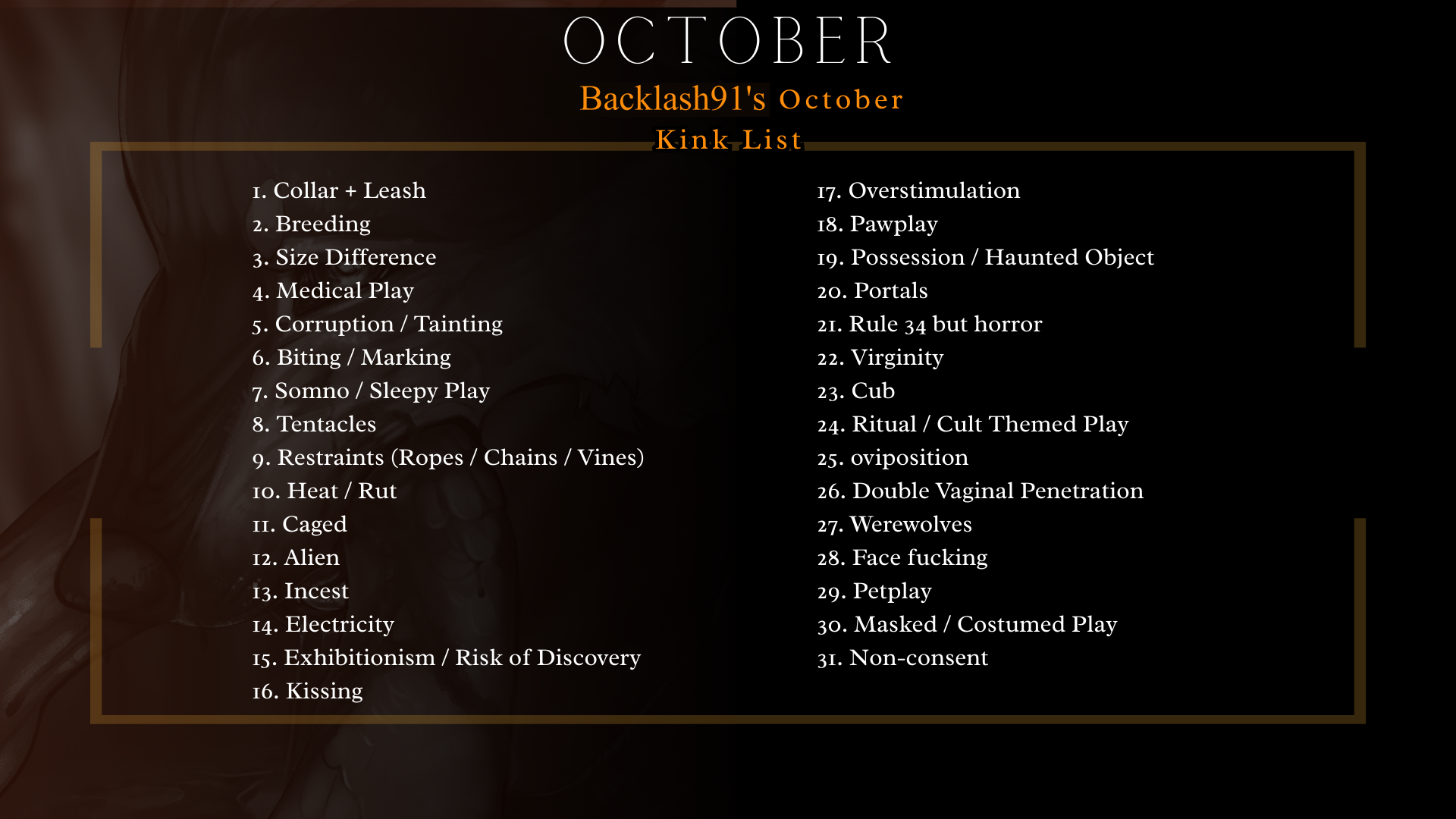 KINKTOBER LIST AND INFO